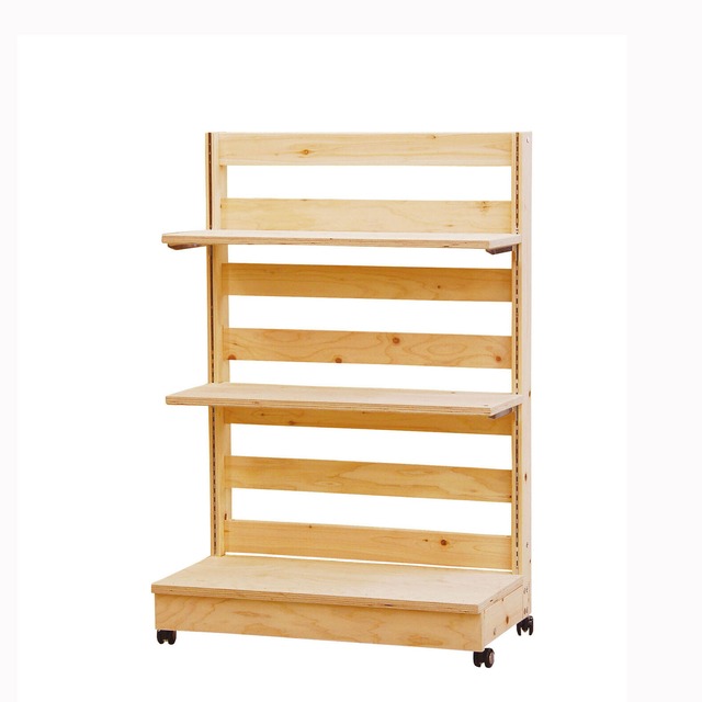 良質な建築材としても有名な岐阜県産ひのき材を使用した合板、 桧プライウッド(HP)を用いた物販什器シリーズ(芯材まで全て桧を使用) ☆ガチャ柱付きの柱一体の背面パネルをベースとした、シンプルでウッディーなシステムゴンドラ什器・両面仕様です。 ☆棚板の位置を細かく変更できるので、物販の商品やディスプレイなどによりセッティングがカンタン・自由です。 ☆オール桧の ナチュラル感あふれるたたずまい。 雑貨、キッチン道具、焼き菓子、ナチュラル食材やグリーン系の陳列にもぴったりです。 ナチュラル感を演出するあらゆる店舗様にお勧めします。 ☆キャスター付ストッカーをセットした仕様。 ストッカーはBOXタイプなので、在庫品や備品類の収納に便利です。 ☆ボルトナットによる組立式。 ☆無塗装品ですので、DIY感覚でお好きなペイント等もご自由にできます。 ※お好きな色へのカスタマイズも可能です(※要 別途塗装代、納期は通常2~3週間) 画像のリストを参照ください。 ★システムゴンドラ セット内容 ・背面パネル:1枚(ガチャ柱付) ・棚板:D340→2枚、D400→1枚 ・ストッカー→1 ・ブラケット、ボルトナット一式 ※※ ご注意 ※※ HPシリーズは製品の特性上、節や割れが表面上出る場合があります。 天然素材の合板使用のため、ご使用に際してご理解くださいませ。 (ある程度のクラックや節は不良品の範囲としていませんのでご了承ください) ★こちらの商品は、運送便の関係上、個人様宅への配達ができません。 宛先には必ず法人名をご記載ください。 ★送料は弊社負担 出荷 1ヵ月程度 サイズ・容量 本体 :約90x85.5xH135cm 棚板(D340):約90x34xt2.4cm 棚板(D400):約90x40xt2.4cm ストッカー:約81x38xH34cm ■生産地:日本 ■素材・成分:岐阜県産桧合板(無塗装) ガチャ柱、ブラケット:スチール 注意事項 ※屋外では使用できません。 屋内でも、日光があたる場所や気温の変化が激しい場所はお避けください。 ※桧合板には節があります。材料は吟味して使用しておりますが、 きれいな節、大きな節、死に節もあり、一枚一枚木目も異なりますのでご了承ください。