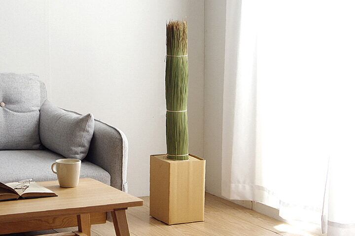 玄関、リビング、トイレ、ソファーサイド、寝室に置くだけで落ち着いた雰囲気が楽しめ、またい草をカットしてナチュラルオブジェとしてもお使いいただけます。
